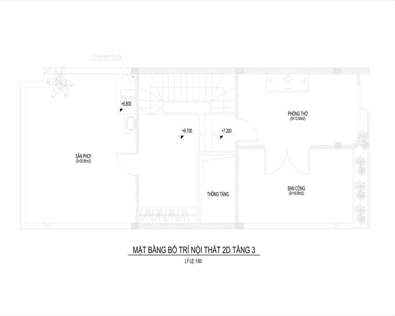 - Tầng 3: 1 phòng thờ, sân phơi