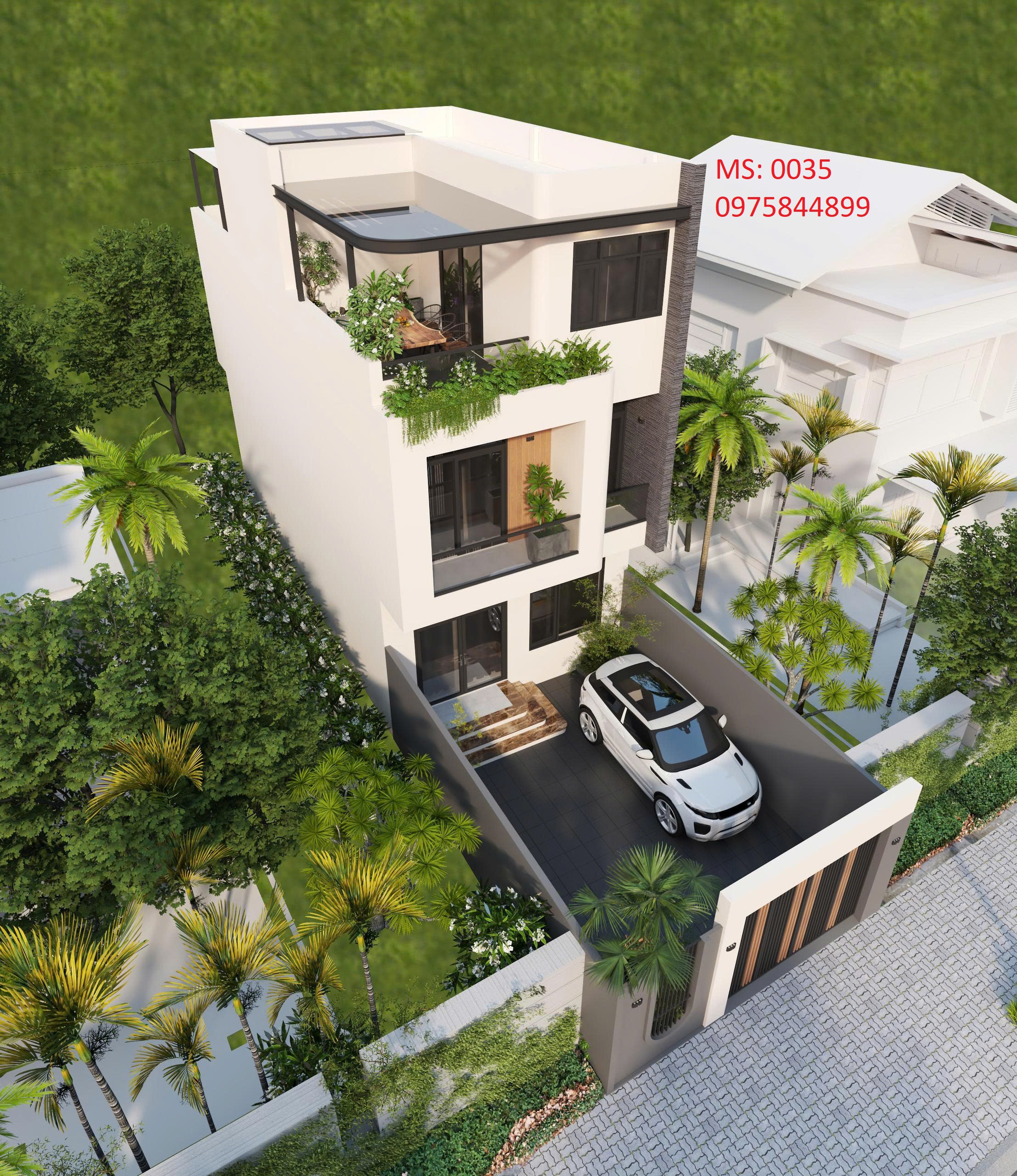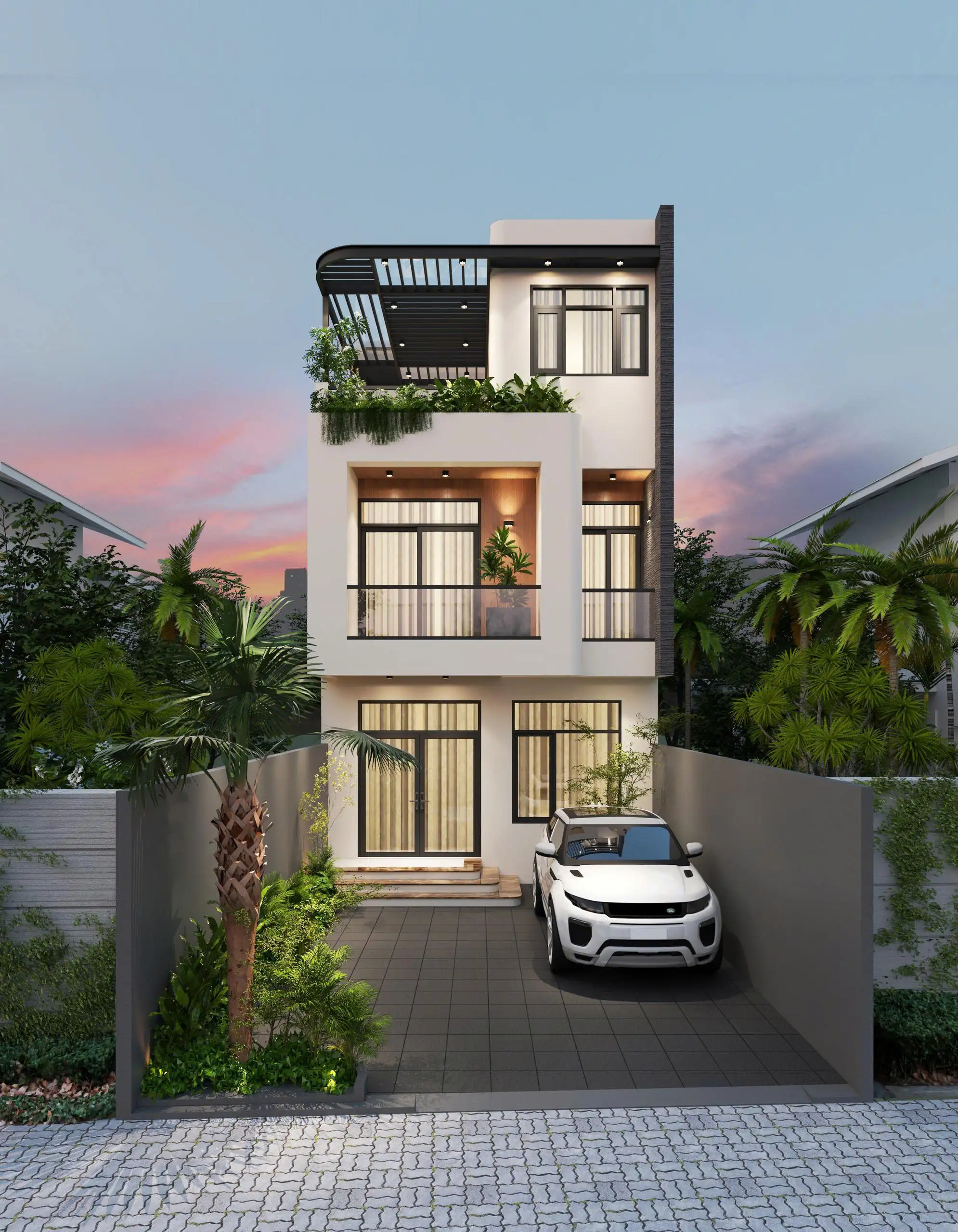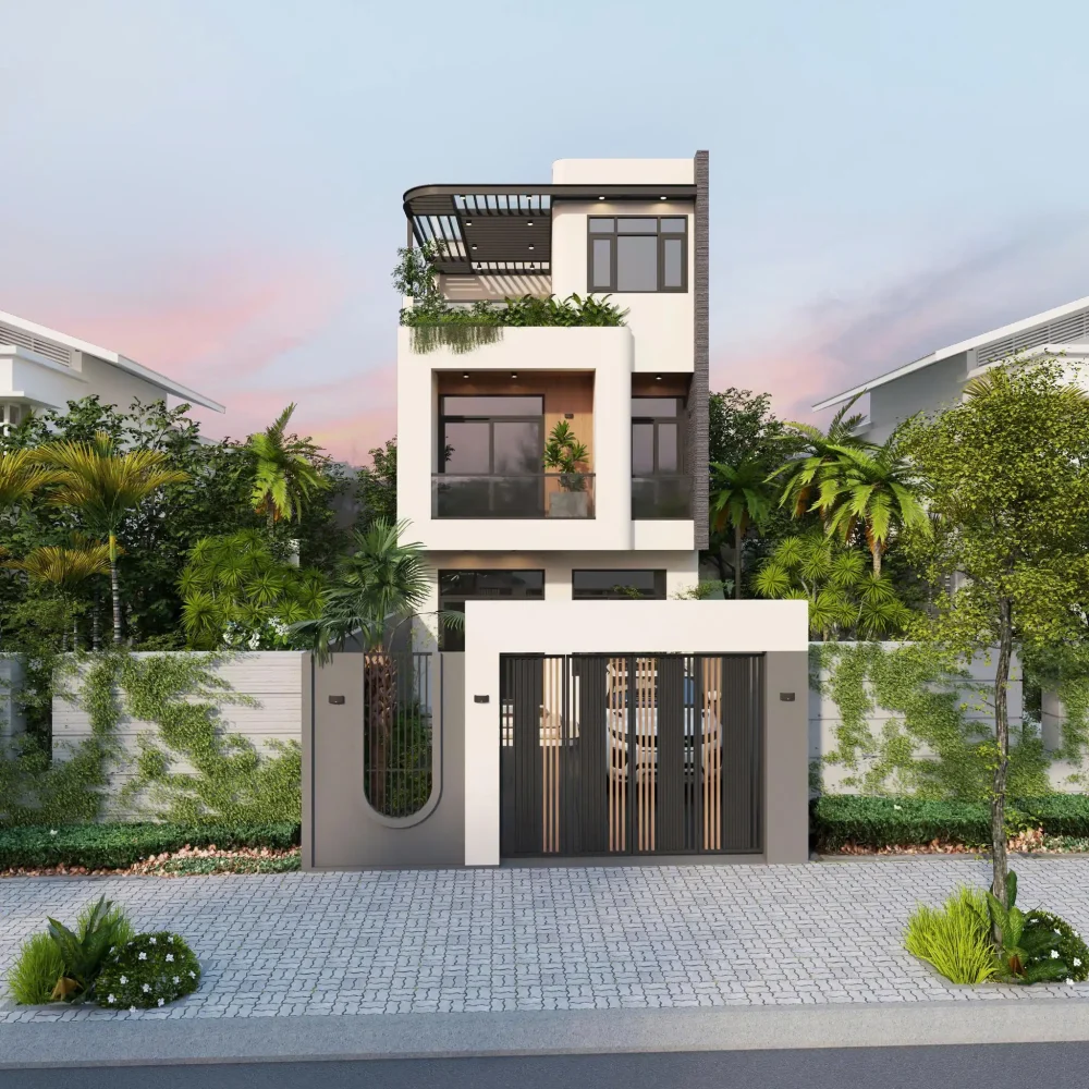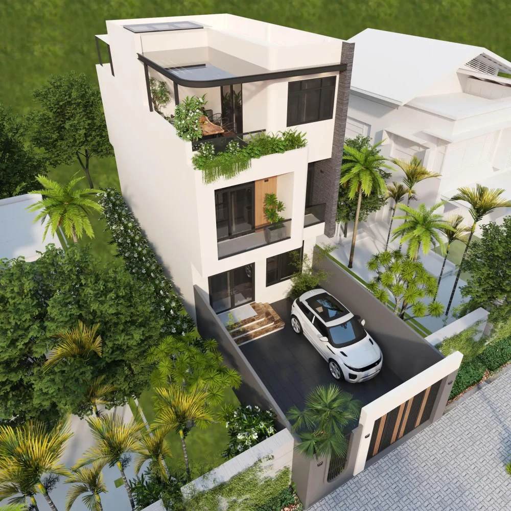 - Phối cảnh 3D ngoại thất mặt tiền góc nhìn chính, phụ